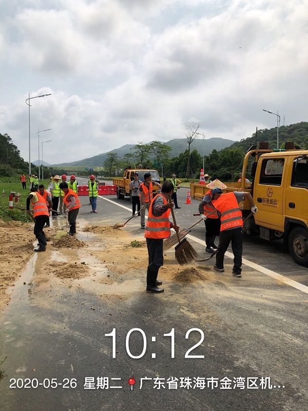 此次應(yīng)急清障演練,金灣交通公路部門(mén)組織應(yīng)急搶險(xiǎn)人員近40人,車(chē)輛10余臺(tái),其中城運(yùn)公司投入道路管養(yǎng)工作人員25人,出動(dòng)6臺(tái)作業(yè)車(chē)輛以及一批小型設(shè)備,參與了有序清障、泥沙清掃、路面清洗和安全撤離等環(huán)節(jié)的實(shí)操演練。演練全過(guò)程前后用時(shí)1.5小時(shí),完成了整個(gè)公路清障應(yīng)急演練活動(dòng)。