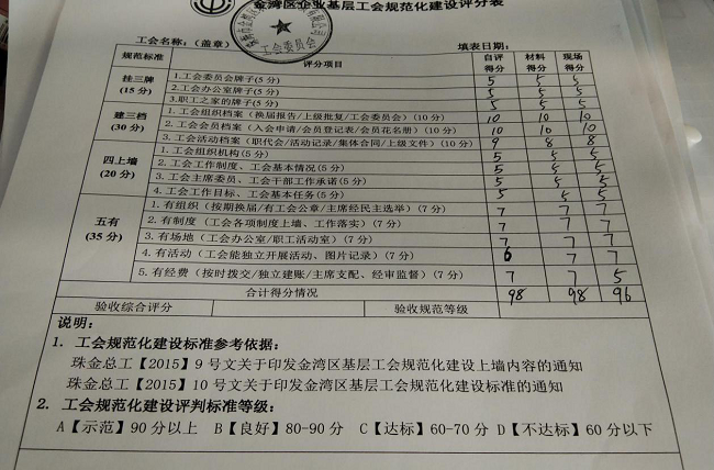 檢查組對(duì)照檢查標(biāo)準(zhǔn)對(duì)公司工會(huì)建設(shè)情況進(jìn)行了現(xiàn)場(chǎng)打分,給予了96分(示范)的高分評(píng)價(jià)。邱影監(jiān)事長(zhǎng)代表公司工會(huì)對(duì)區(qū)總工會(huì)的關(guān)心和支持表示感謝,強(qiáng)調(diào)公司下一步將繼續(xù)在區(qū)總工會(huì)領(lǐng)導(dǎo)下,持續(xù)加強(qiáng)職工之家建設(shè),營(yíng)造更加溫馨的工作環(huán)境,讓員工真正愛(ài)企業(yè)、維護(hù)企業(yè),以企業(yè)為家。