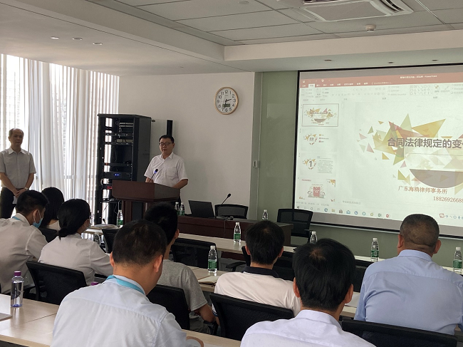 為進(jìn)一步提升物業(yè)管理水平,強(qiáng)化物業(yè)管理中法律風(fēng)險(xiǎn)的防范意識(shí)和防控能力,4月22日下午,資產(chǎn)公司舉辦了《民法典》合同篇專題講座,特邀公司法律顧問、廣東海鷗律師事務(wù)所劉付寧律師主講。