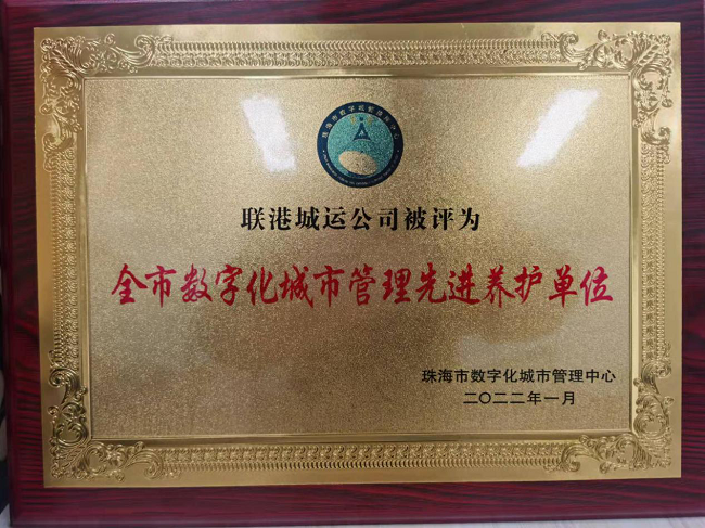 1月27日,珠海市數(shù)字化城市管理中心根據(jù)2021年度珠海市全市各養(yǎng)護單位案件結(jié)案率及結(jié)案及時性等方面進行年度綜合評分,根據(jù)評分結(jié)果授予我公司“2021年度珠海市數(shù)字化城市管理先進養(yǎng)護單位”稱號。